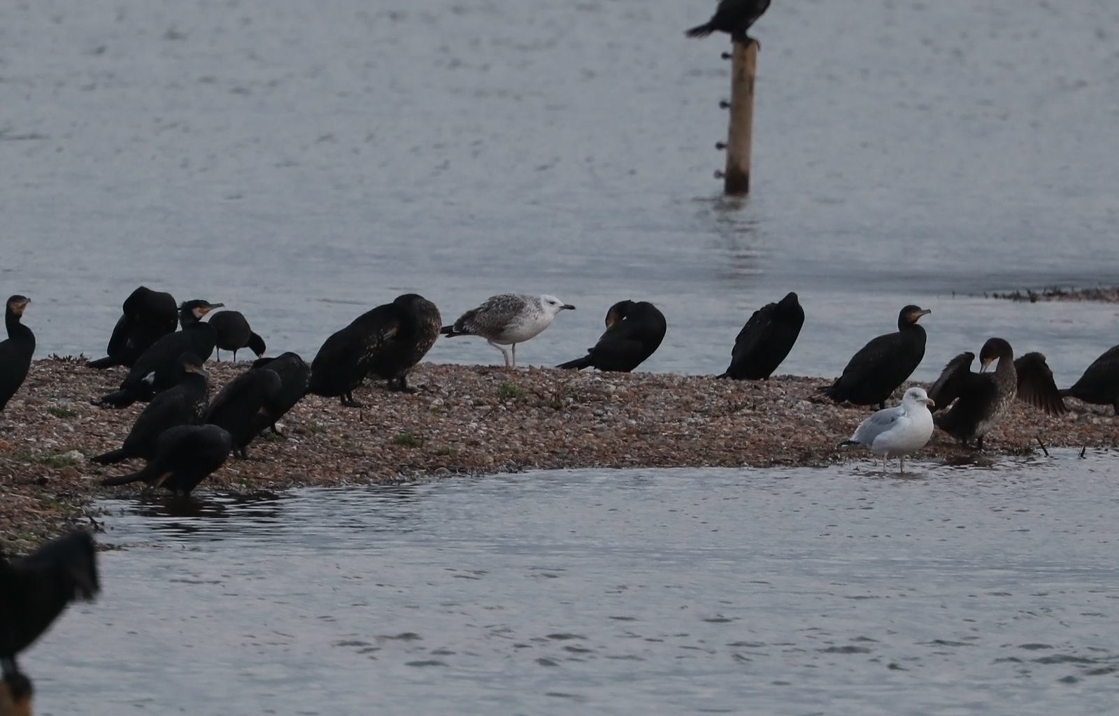 The sea from the fishing boats the last 3 days have been littered with 1,000s of sea birds, mainly Guillemots, Razorbills, Great-crested Grebes, Red-throated Divers, Gannets, Kittiwakes and 1,000s of Cormorants, with a few Common Scoter, Great Skuas, Brent Geese and Mediterranean Gulls. Very few of these birds appear to be going any where, just moving from Lade Bay to Rye Bay and back to feed. Several Caspian Gulls have added some interest. The 3 Cattle Egrets seem to have taken residence in the horse paddocks opposite Home Leigh Farm, the 2 Whooper swans are still at the back of Scotney and the Bewick Swans are at Horses Bones Farm. In general the reserve has been very quiet, still no Smew and all the Goosander have moved on, a distinct lack of grey Geese though 100 flew over Dengemarsh Chistmas Eve per Pam & Pete, Bitterns, Bearded Tits and Great White Egrets are still seen daily.