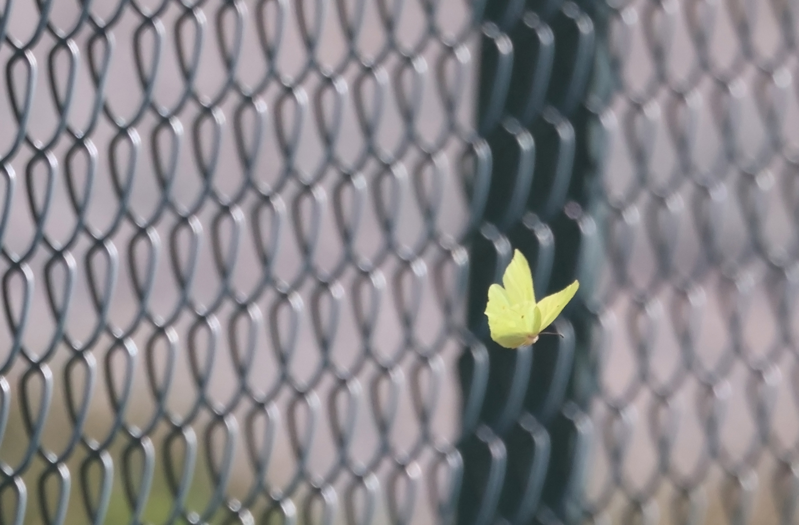 A rubbish pic of Brimstone flying along the front of the power station, first I've seen at this location
